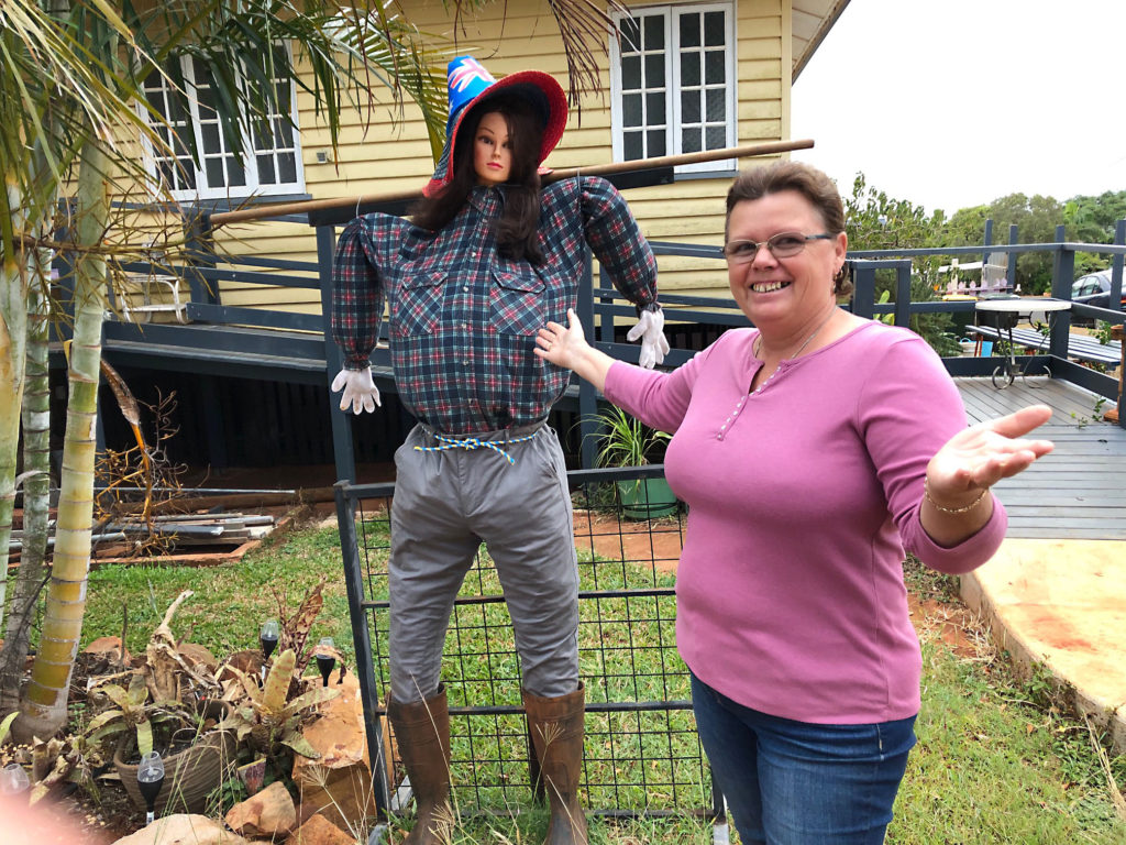 There’s nothing too scary about the scarecrow perched in the front yard of the Clarke residence in Oakes Street, Childers.