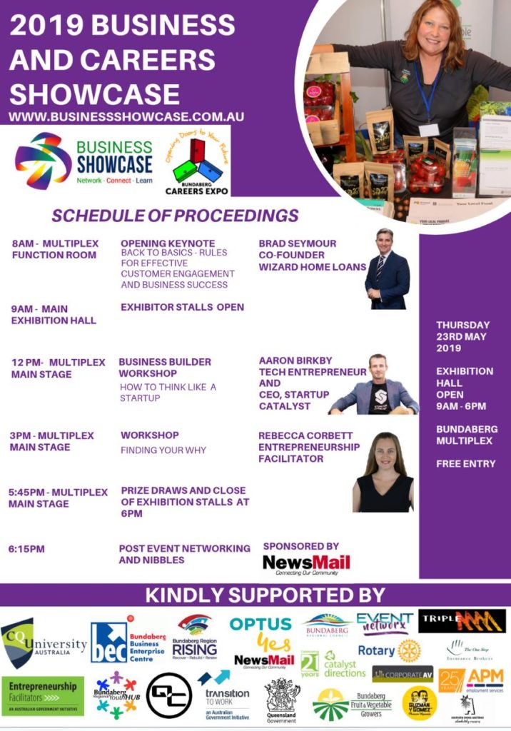 Local businesses are being encouraged to come along to this year’s new-look Business and Careers Showcase being held at the Bundaberg Multiplex on Thursday.