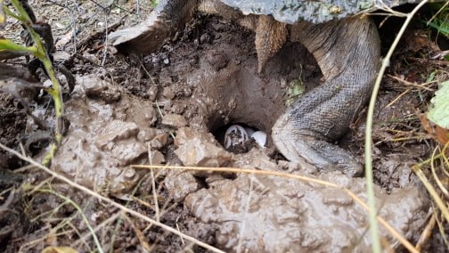 “About eight months ago one of our goats was making a lot of noise and we went out to realise the same type of turtle was nearby and had startled the goat.