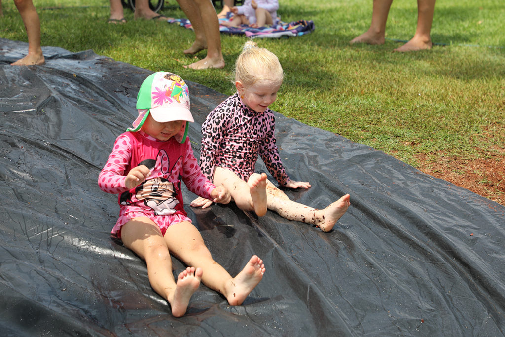 Slippery slide was a huge hit at the water play event in Childers.