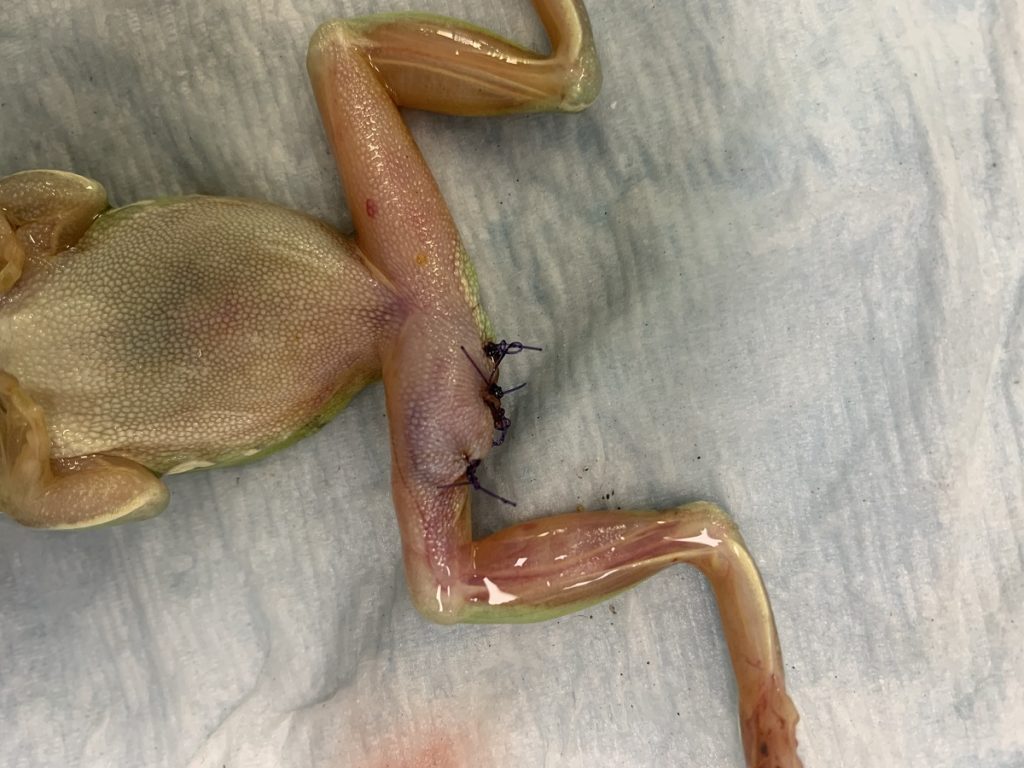 The team managed to save the amphibianās leg with surgery only taking 25 minutes.
