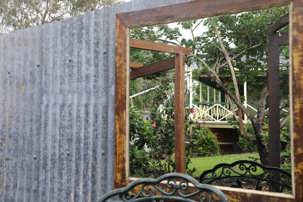 The Bundaberg green thumb said she was given fence palings from a neighbour which were then repurposed under the house to expend the tropical garden.