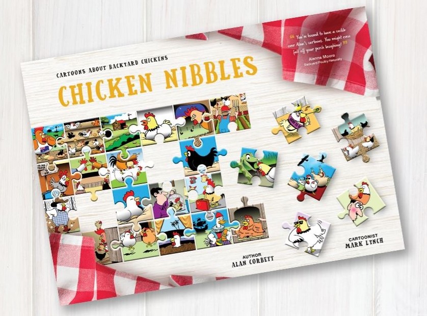 Alan’s book, Chicken Nibbles: Cartoons About Backyard Chickens, is available for all chicken lovers to purchase by email here.