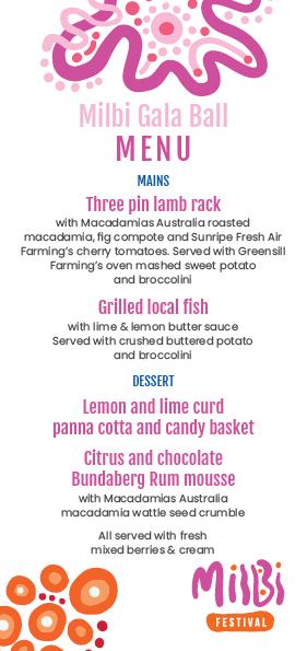 Council’s Arts, Culture and Events portfolio spokesperson Cr John Learmonth said the Milbi Gala Ball would be plating up a feast of locally grown goods from the region’s producers with canapes and a two-course meal.