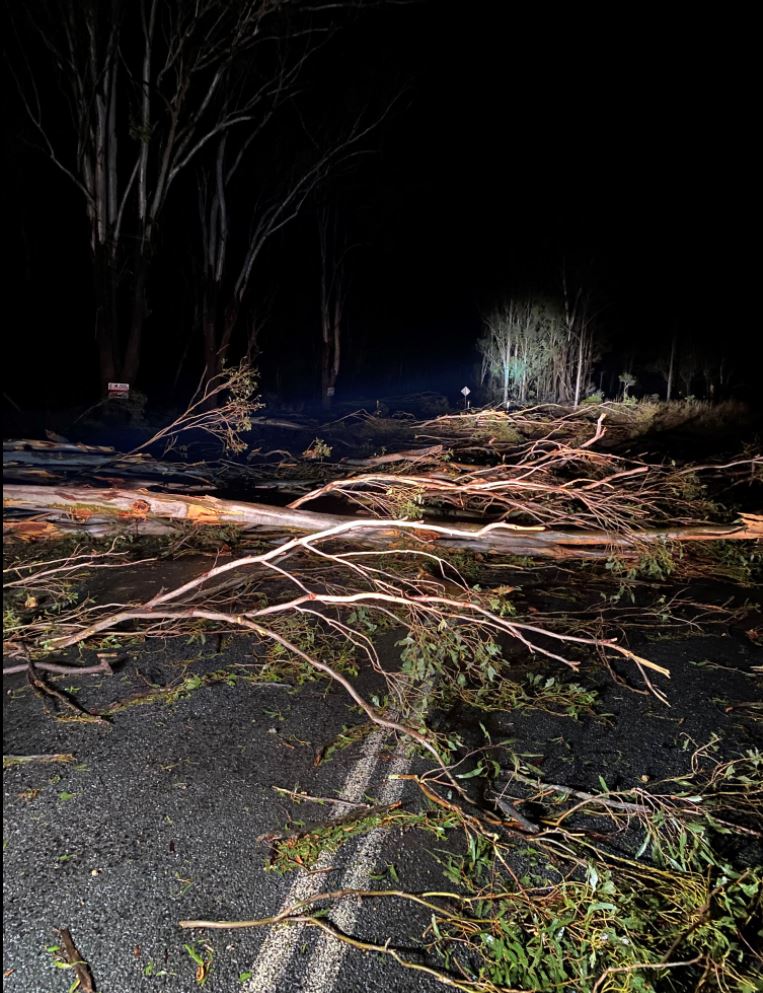 “Locals report a tornado-style storm last night brought down trees, blocking roads and bringing down powerlines.