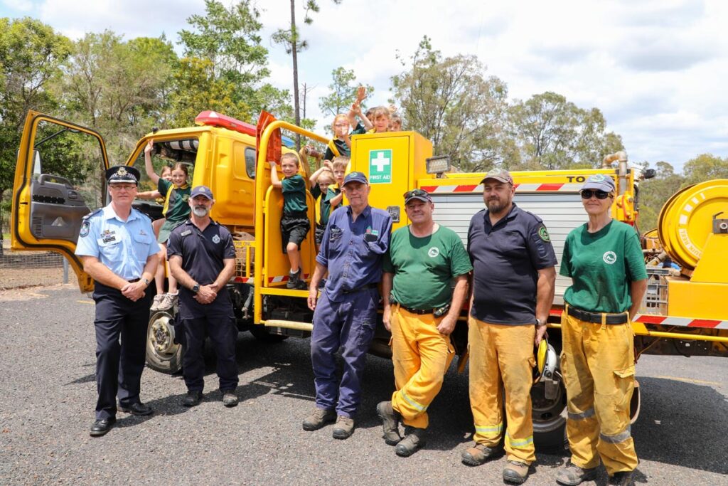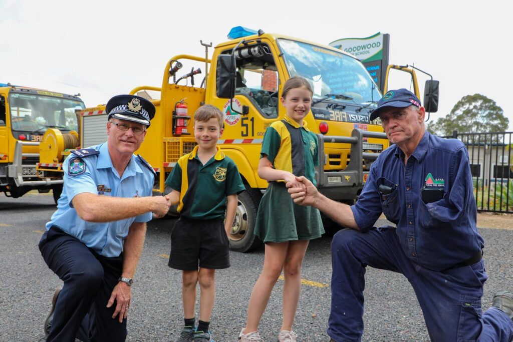 Staff, students and parents of Goodwood State School were visited by the Queensland Police Service (QPS) and Queensland Fire and Emergency Services (QFES) to congratulate them on an efficient evacuation during the Goodwood fire.