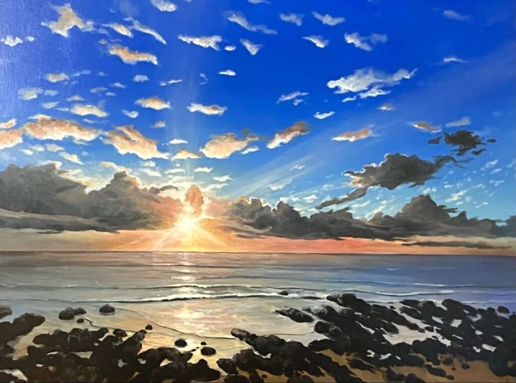 Whether capturing the life and colour of each subject in pastels and acrylics or the expressive freedom of brushstrokes alongside palette knife and mixed media, each piece is created with love of the Australian coastline, the remarkable inland and places beyond our shores.