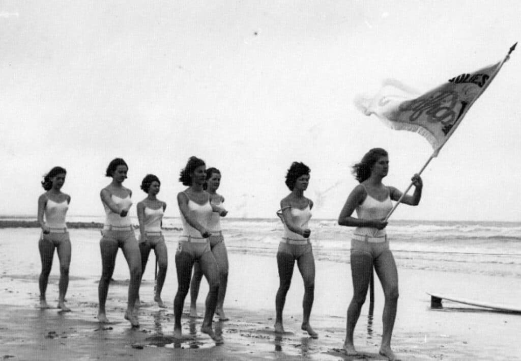 Siren of the Surf was a competition where groups of women would march in the same style as the lifesavers in teams along the beach.