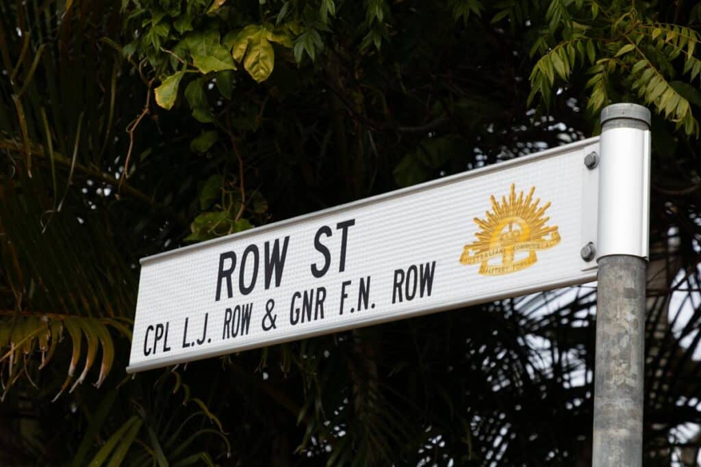 First named on 19 July 1951, Row Street in Kepnock now also bears the Rising Sun badge, honouring the service of Corporal Laurence Row and Gunner Frederick Nicholas Row during World War II.
