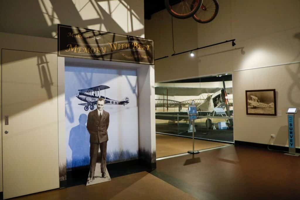 The new “Make a Memory with Bert” display offers a free photo opportunity in the foyer where visitors can capture a keepsake alongside a life‑size cutout of Bert Hinkler and his Avro Avian aircraft.