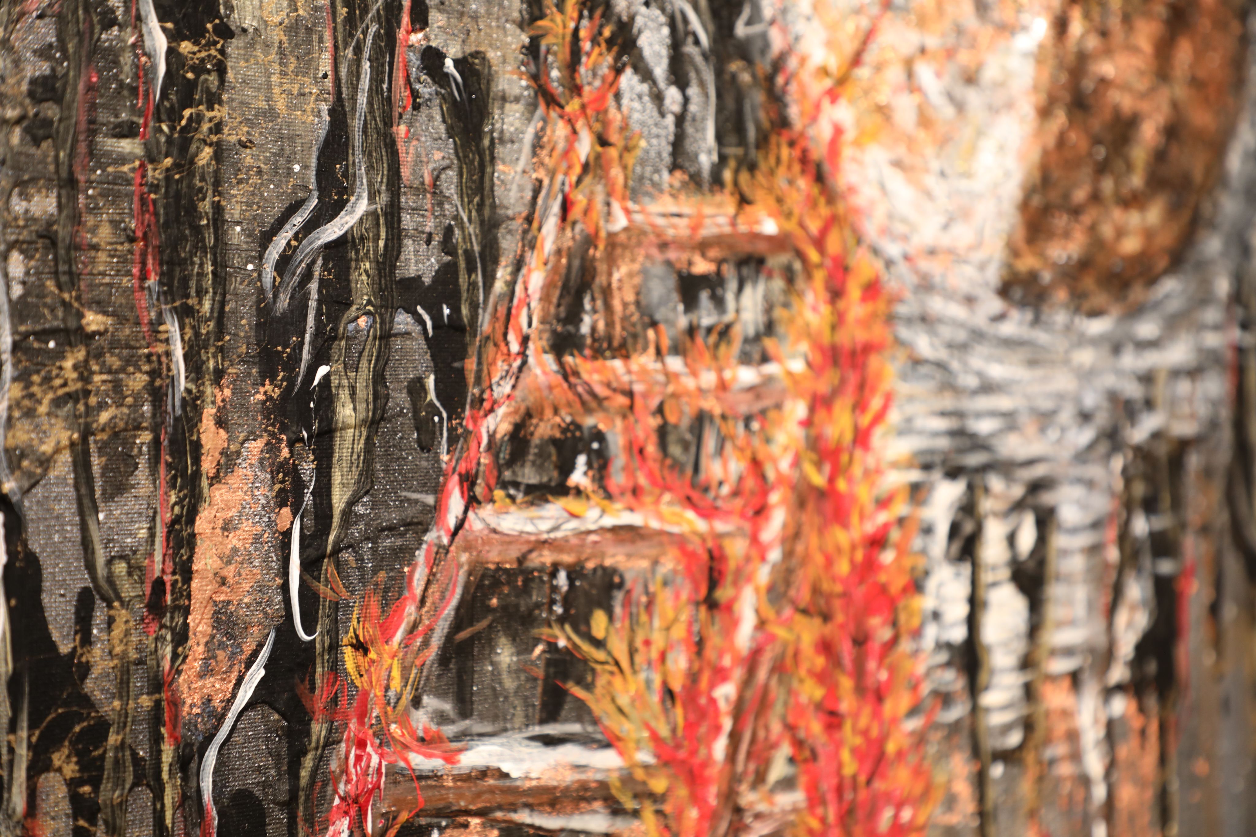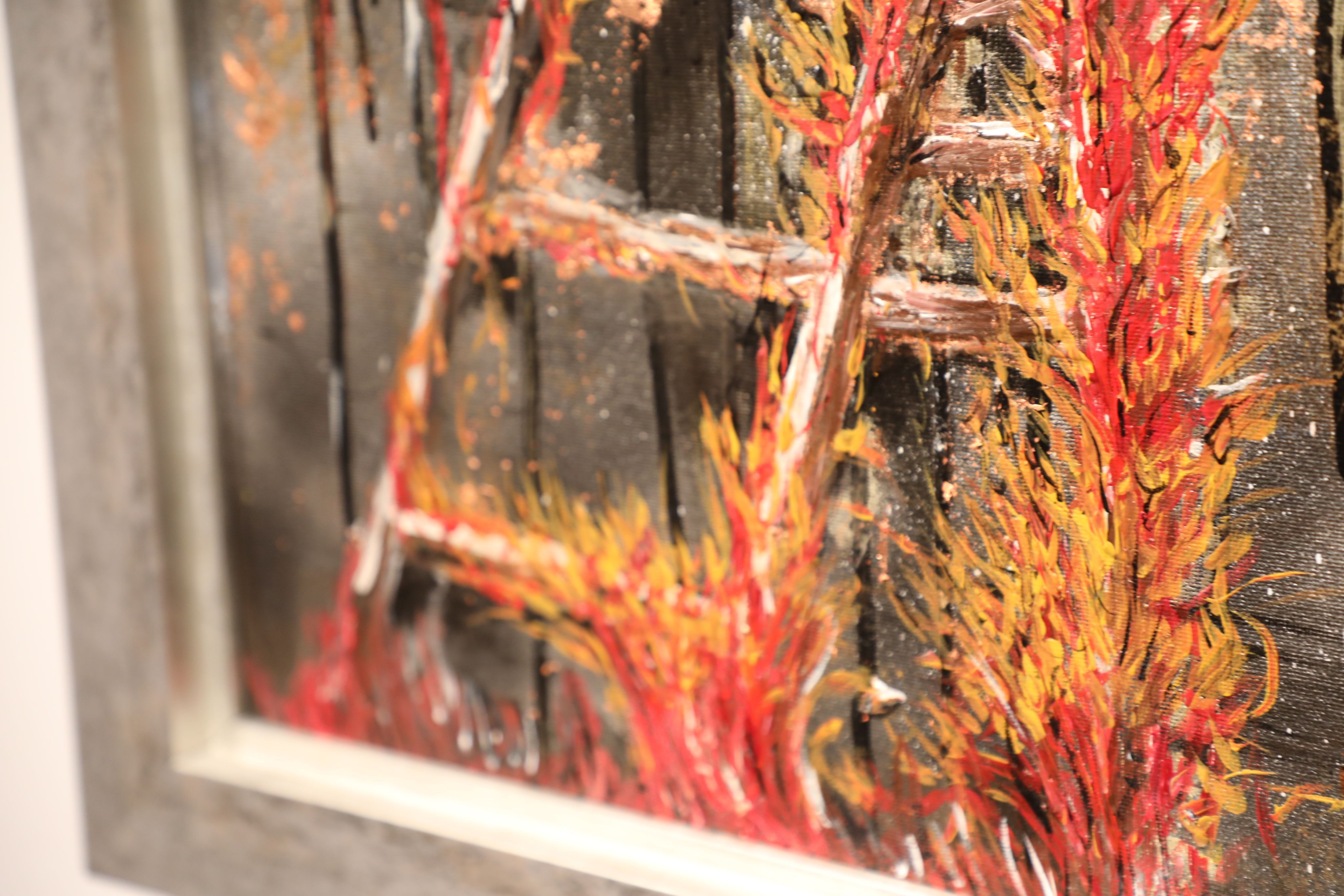 The artwork is on canvas, I used acrylic paints, spray paints and gold leafing.