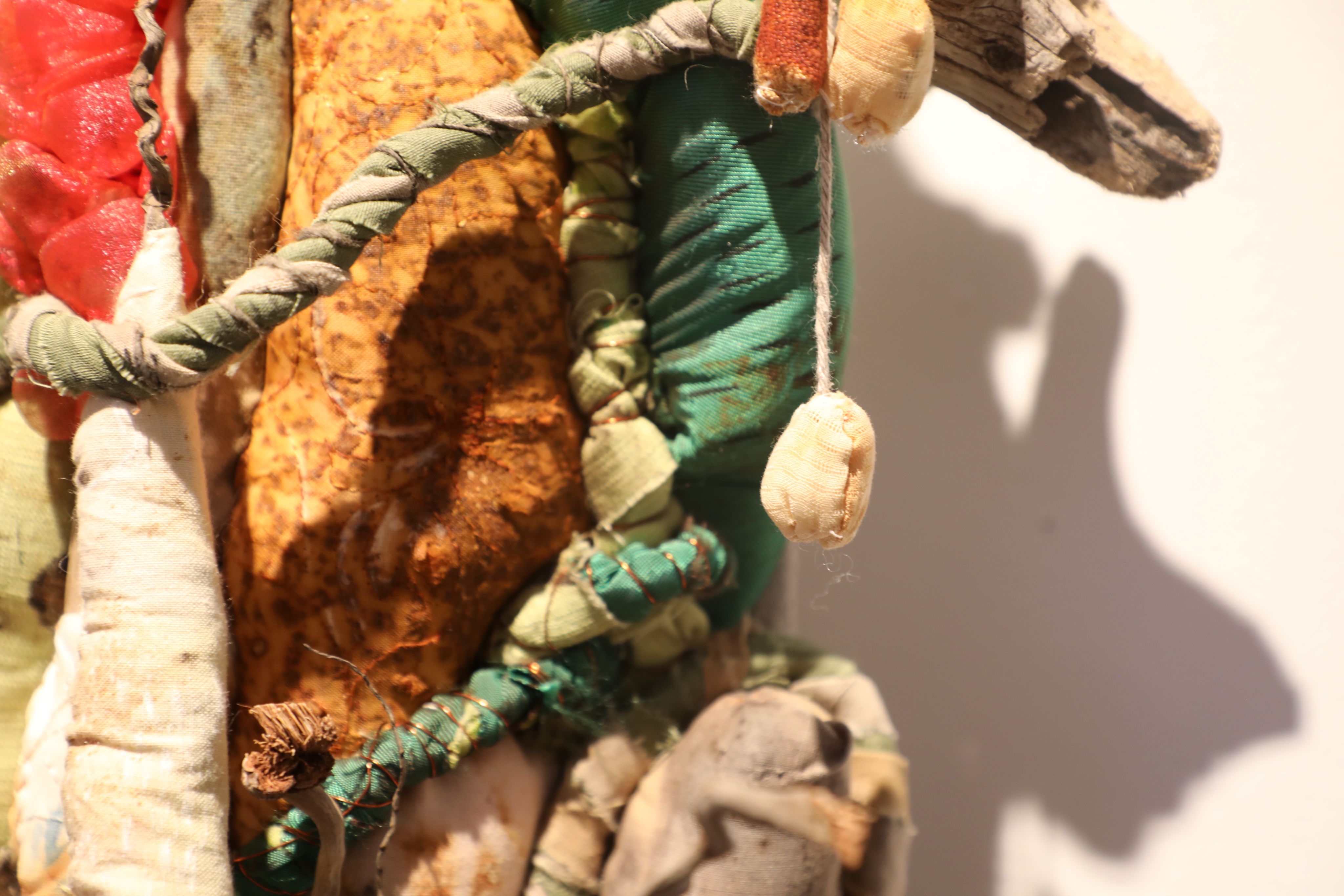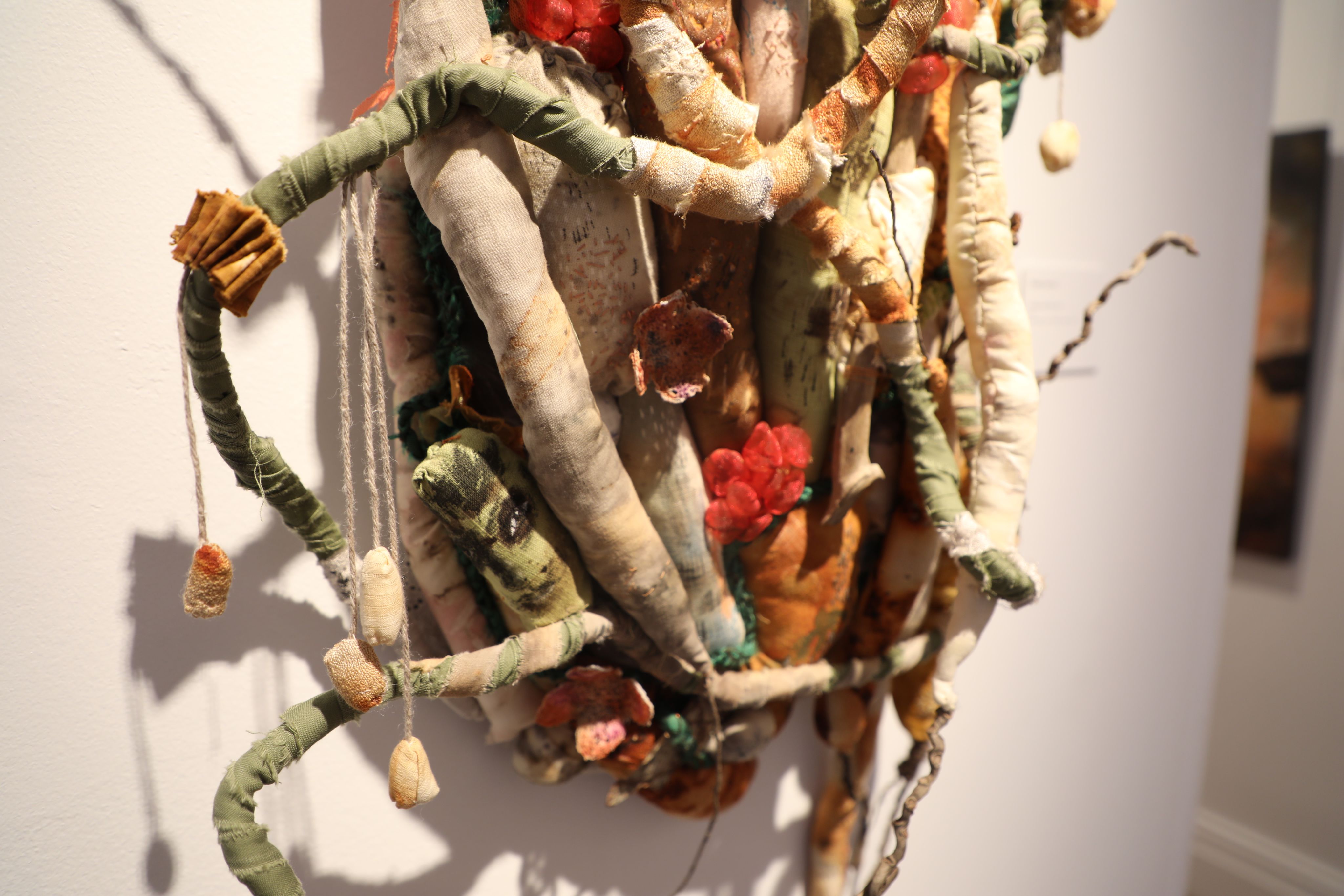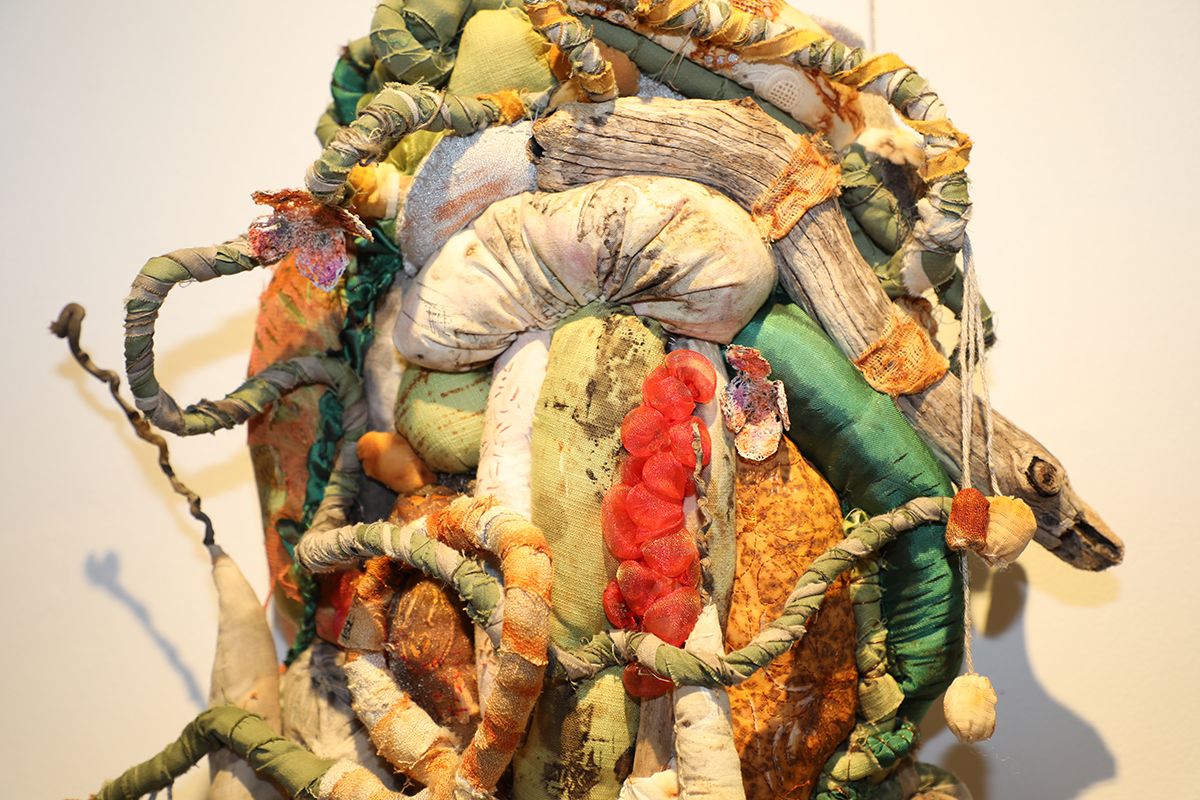 My artwork “Hidden Within the Land” is a three-dimensional fabric and found object wall hung