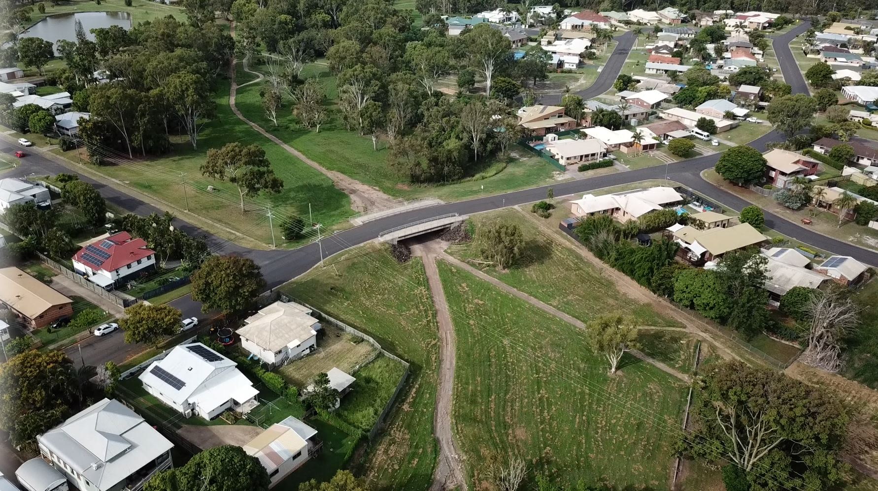Between Ford Street and Bundaberg Creek, the Washpool Creek corridor is currently comprised of a concrete channel and large open grassed areas with sparse mature trees.