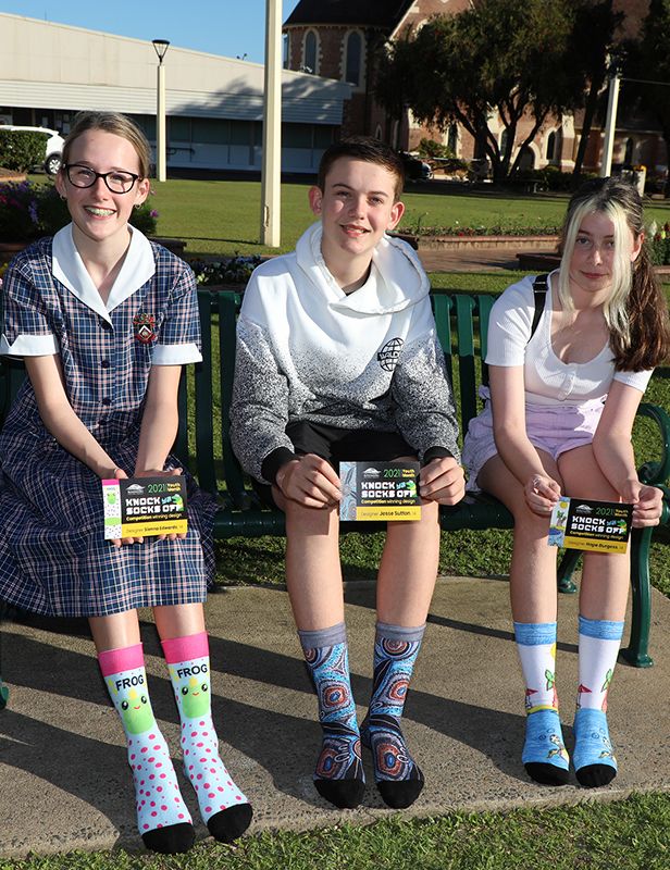 Jesse Sutton, Sienna Edwards and Hope Burgess were recently named the winners of Bundaberg Regional Council’s Knock Ya Socks Off competition with their winning designs to be produced on hundreds of pairs of socks.